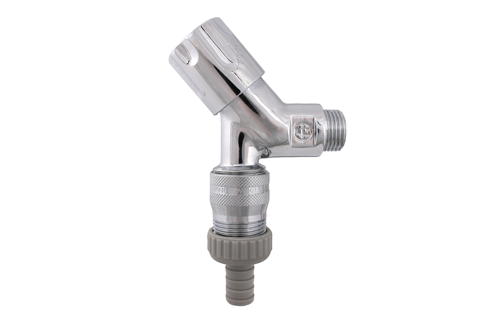 Schlösser Geräteschrägsitzventil 7183 DN 15, 1/2", Designgriff, Schlauchverschraubung, Wasserstop, poliert verchromt