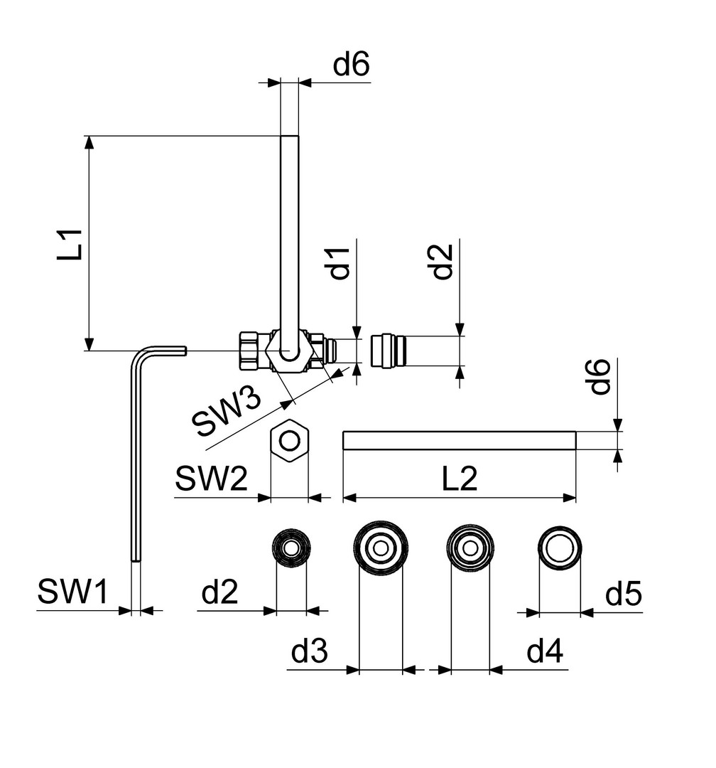 Schlösser Probenahmeventil-Set 8134 Messing, Rohre Edelstahl mit Adapter