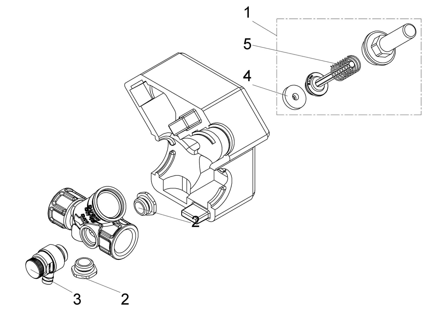 Muffenanschluss, Schallschutz (DN 15-32), Entleerungsventil 1831 1/4", ab DN 40 Entleerungsstopfen 1836 1/4", Oberteil 1820