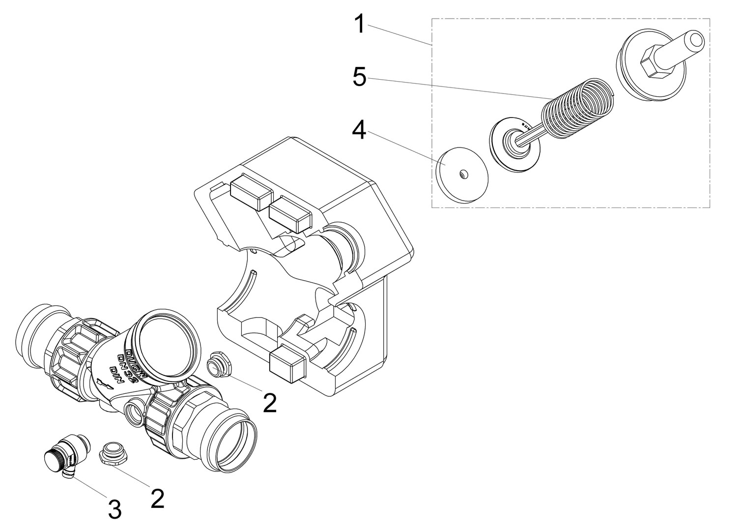 Pressanschluss, Schallschutz (DN 15-32), Entleerungsventil 1831 1/4", Entleerungsstopfen 1836 1/4", Oberteil 1820