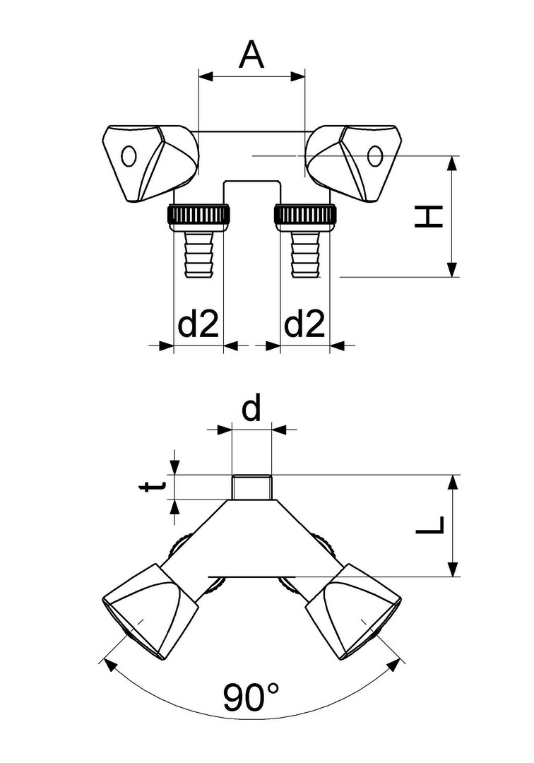 2 x Haubengriff, mit Schlauchverschraubung, ohne Anschluss 1/2" IG