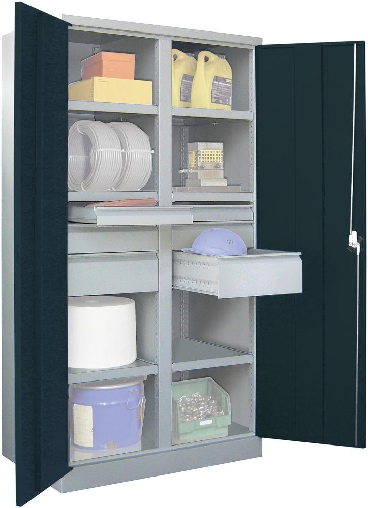 Schwerlastschrank m.Türen H1950xB1040xT630 mm 8 Böden RAL 7035 Mittelwand K23520434
