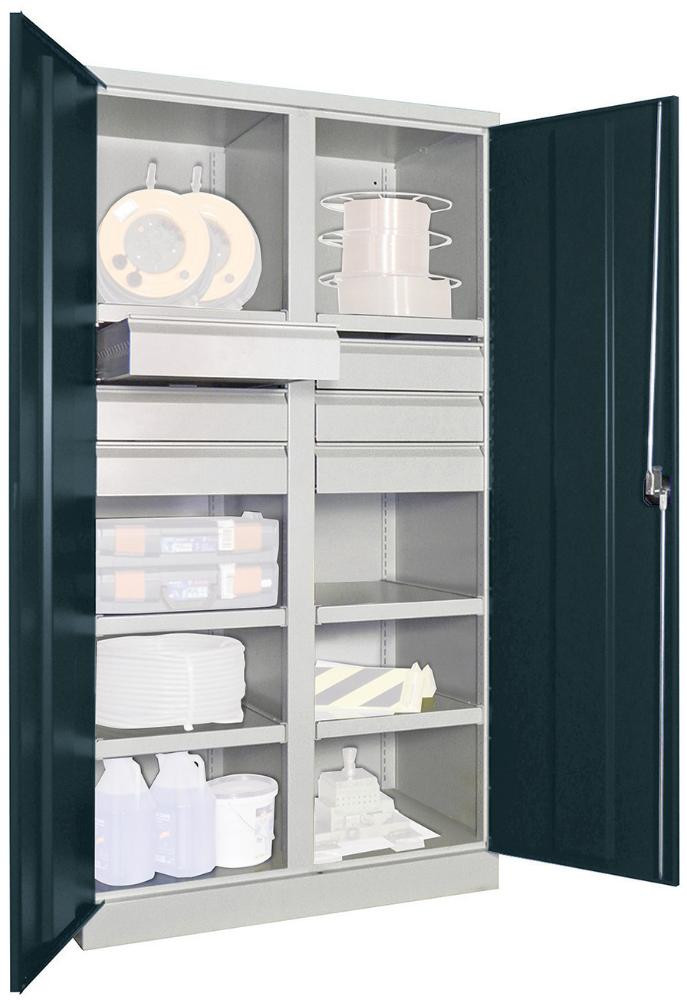 Schwerlastschrank m.Türen H1950xB1040xT630 mm 8 Böden RAL 7035 Mittelwand K23520434
