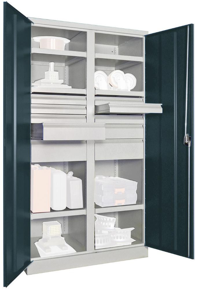 Schwerlastschrank m.Türen H1950xB1040xT630 mm 8 Böden RAL 7035 Mittelwand K23520434