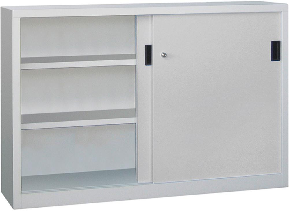 Schwerlastschrank H1000xB1500xT400 mm 4 Böden verz. Mittelwand RAL 7035 Schiebetür K23553488