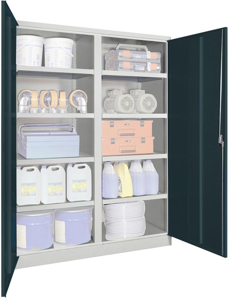 Schwerlastschrank m.Türen H1950xB1470xT630 mm 8 Böden RAL 7035 Mittelwand K23537541