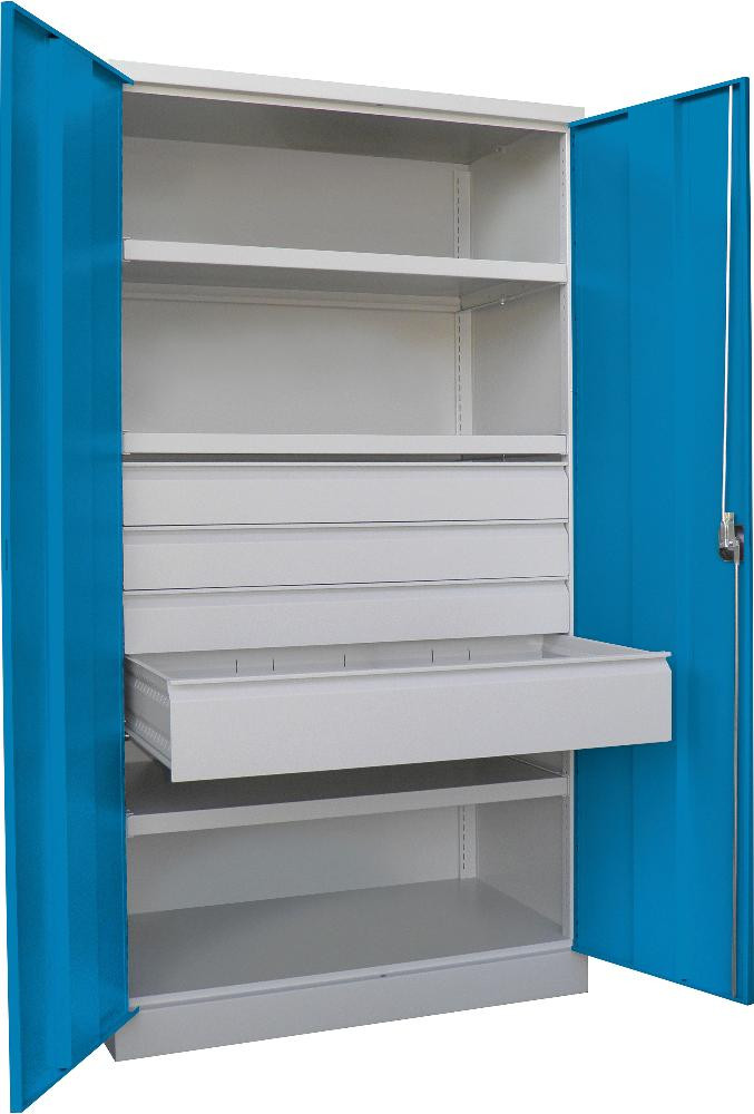 Schwerlastschrank m.Türen B1040xT630xH1950 mm 3 FB, SL 3 x FH 125 mm RAL 7035 K23519578