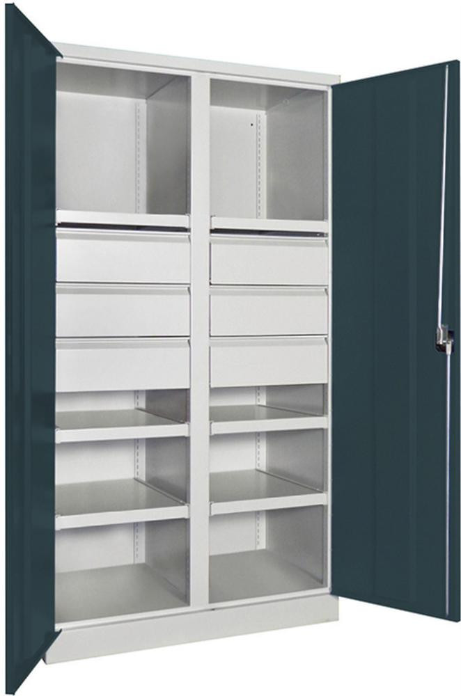 Schwerlastschrank m.Türen B1040xT630xH1950 mm 6 FB, SL 6 x FH 175 mm RAL 7035/7016 Mittelwand