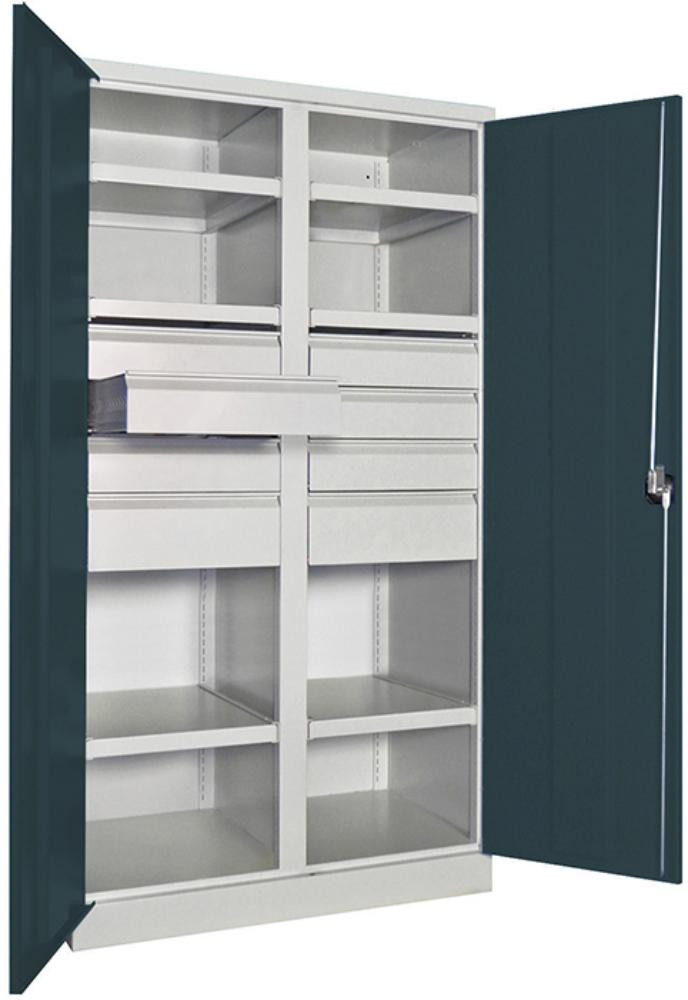 Schwerlastschrank m.Türen B1040xT630xH1950 mm 8 Böden RAL 7035 Mittelwand K23507738