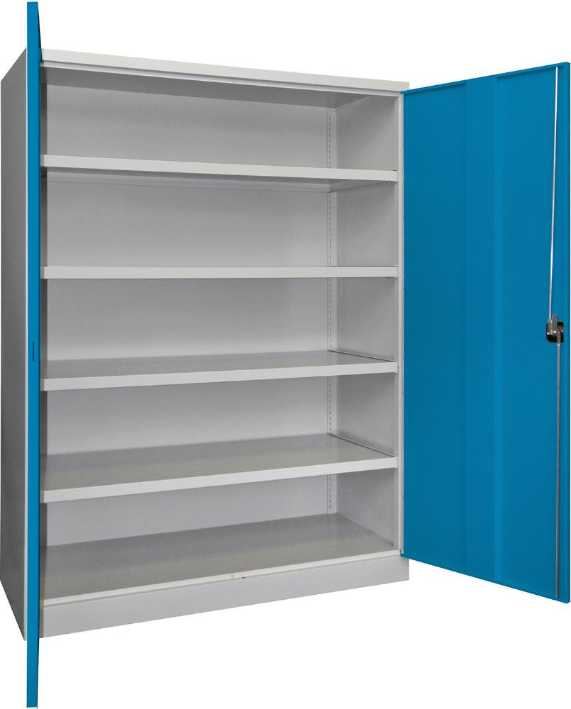 Schwerlastschrank m.Türen B1470xT630xH1950 mm 4 Böden RAL 7035/5012 K23510856