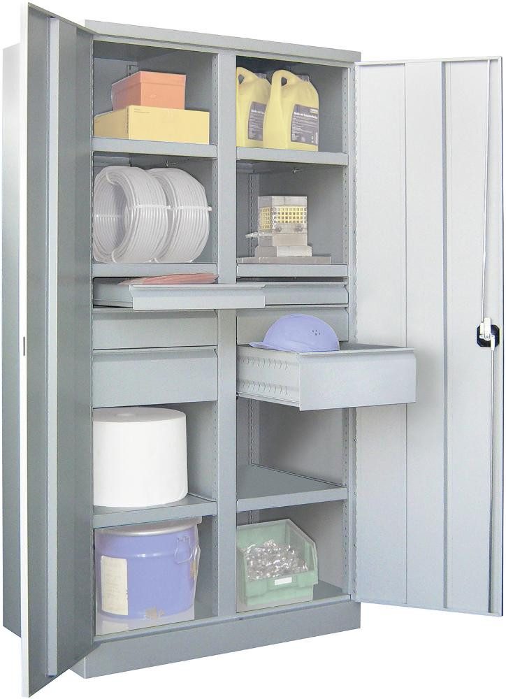Schwerlastschrank m.Türen H1950xB1040xT630 mm 8 Böden RAL 7035 Mittelwand K23520434