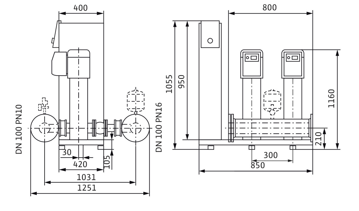 Wilo Mehrpumpenanlage SiBoost2.0 Smart 2HELIX VE3602/7,5kW, DN100 (PN 10), DN100 (PN 16), 7.5kW, 8.33kW K23250350