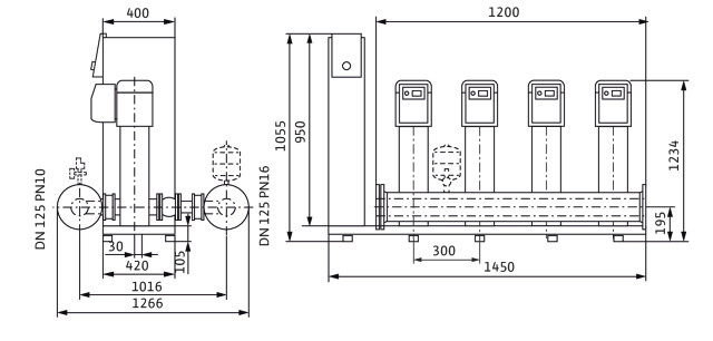 Wilo Mehrpumpenanlage SiBoost2.0 Smart 4HELIX VE2204, DN125 (PN 10), DN125 (PN 16), 7.5kW, 8.33kW K23250345