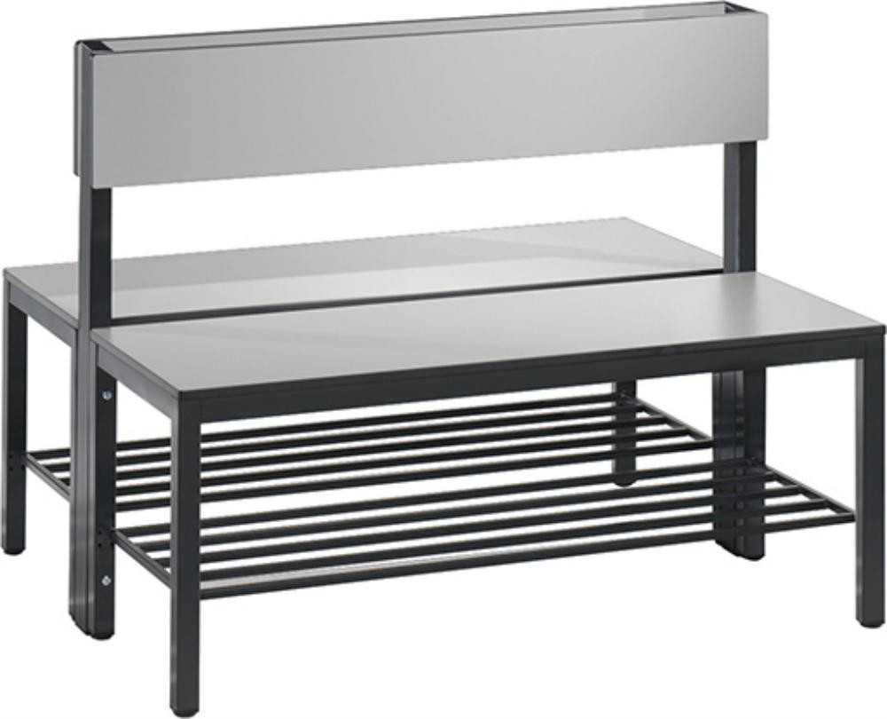 Doppelseitige Sitzbank, mit Rückenlehne und Schuhrost