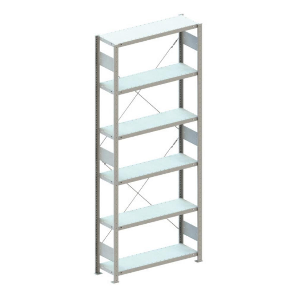 Steckregal Meta-CLIP B1000xT300xH2500 mm Grundfeld 6 Böden RAL7035 Fachlast 100kg