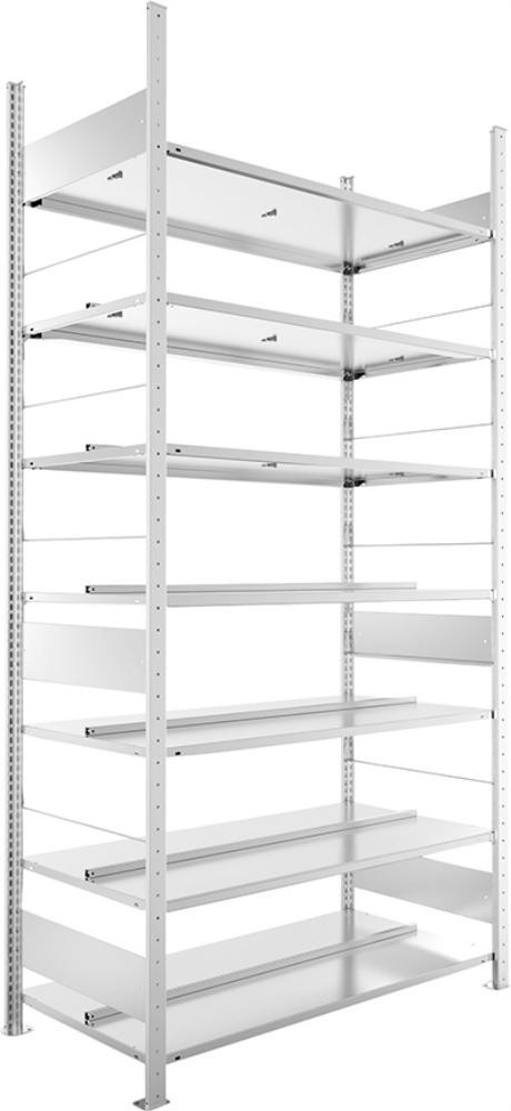 Steckregal Meta-COMPACT B1250xT600xH2500 mm Grundfeld 7 Böden vzk 120 Ordner je Regalfeld