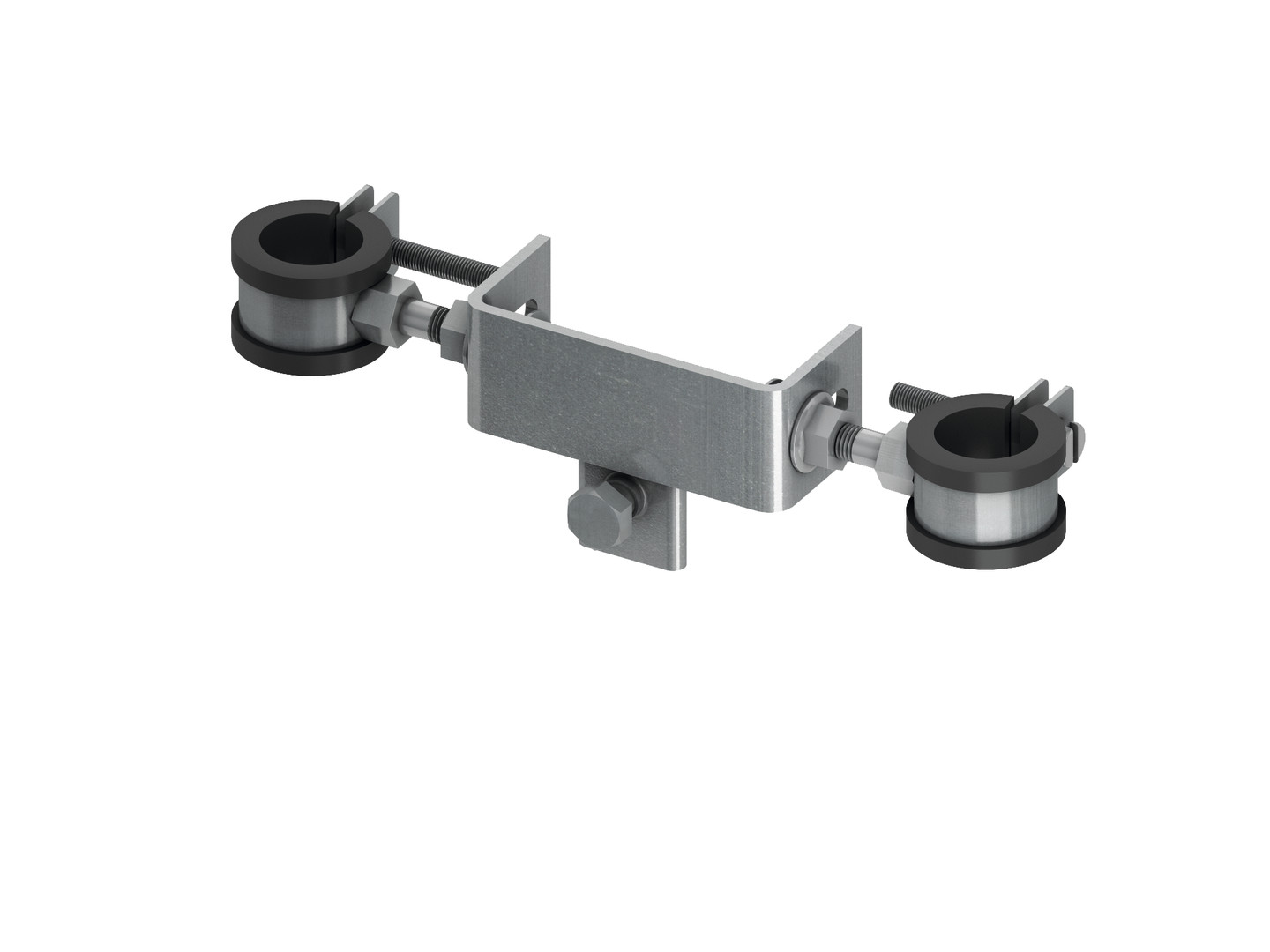 Halter zur stabilen Befestigung von handelsüblichen Absperr- und Zählereinrichtungen mittels Rohrschellen, stufenlos abstands- und höhenverstellbar, vormontierte Einheit bestehend aus: 2 Rohrschellen mit Schallschutzgummi und Befestigungsmaterial zur Befestigung an einem TECEprofil-Profilrohr