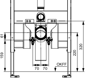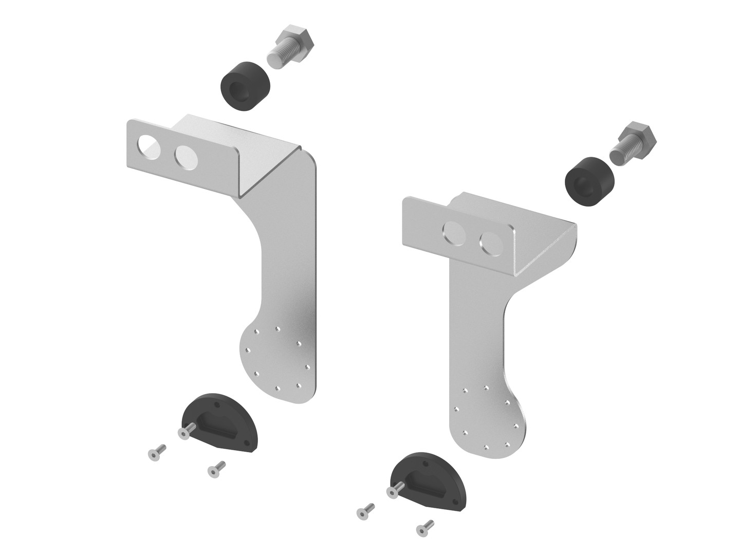 schallentkoppeltes Rohbauset zur Vorrüstung von Trockenbaumodulen mit Octa II- und Base 8-Spülkasten für den Wasseranschluss eines Dusch-WC, Rohbauset bestehend aus Haltebleche für Warm- und Kaltwasseranschluss, Schallschutzelemente für Wandscheiben, Befestigungsschrauben für Wandscheiben, zwei Schrauben M 12 x 20 mit Distanzhülsen