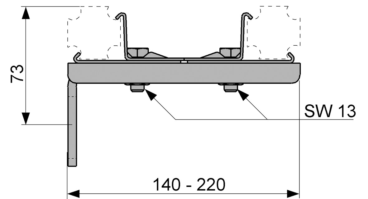 zur gleichzeitigen Befestigung von 2 TECEprofil-Profilrohren am Baukörper, für Tragwerkstiefen von 140-220 mm, vormontierte Einheit aus verzinktem Stahl, mit Befestigungsmaterial, optional TECEprofil Schallschutzset für Befestigungswinkel 9021019