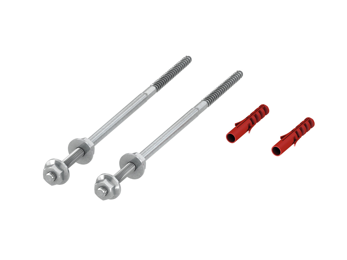 Modulbefestigung mit Stockschrauben vor Massivwänden, für Tragwerkstiefen von 145-175 mm, bestehend aus 2 Stockschrauben mit Dübeln und 4 Flanschmuttern