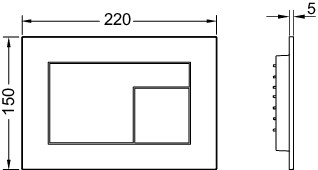 für Spülkasten zur Betätigung von vorne oder von oben, sehr flache Kunststoffbetätigungsplatte mit gummigepufferten Betätigungstasten, mit Betätigungsstangen und Befestigungsmaterial, geeignet für den flächenbündigen Einbau in Verbindung mit dem WC-Einbaurahmen und dem TECEnow Distanzrahmen, kompatibel zum Einwurfschacht für Reinigungstabs, 220 x 150 x 5 mm
