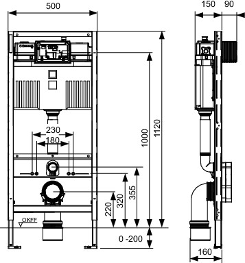 TECE WC-Modul TECEprofil 1120 mm, mit Uni Spülkasten, Betätigung vorne, Hygienespülfunktion kalt K20229102