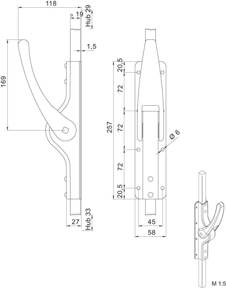 | Ausführung | für 19-mm-Vierkantstange, mit 4 Stangenschlaufen |