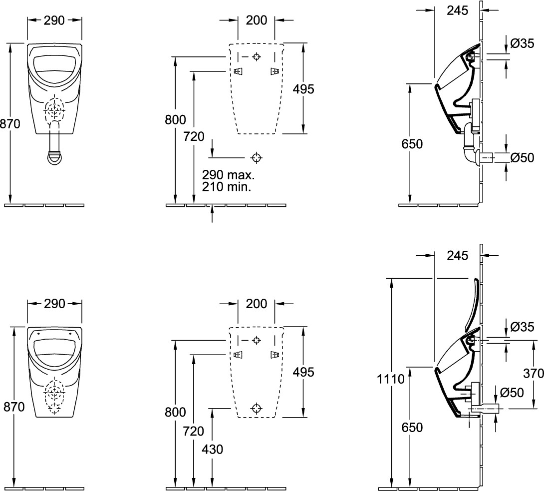 V&B Absaug-Urinal O.NOVO Compact 29 x 49,5 x 24,5 cm, für Deckel, mit Zielobjekt, weiß C-plus K20563611