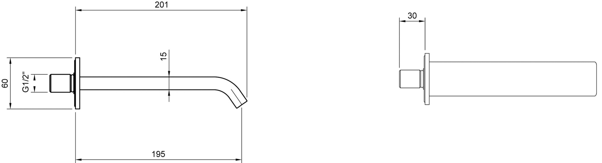 60 x 60 x 201 mm, Rund, Drehen, Material aus Messing, maximale Durchflussmenge bei 3 bar 19,9 l/min, Auslauflänge 195 mm