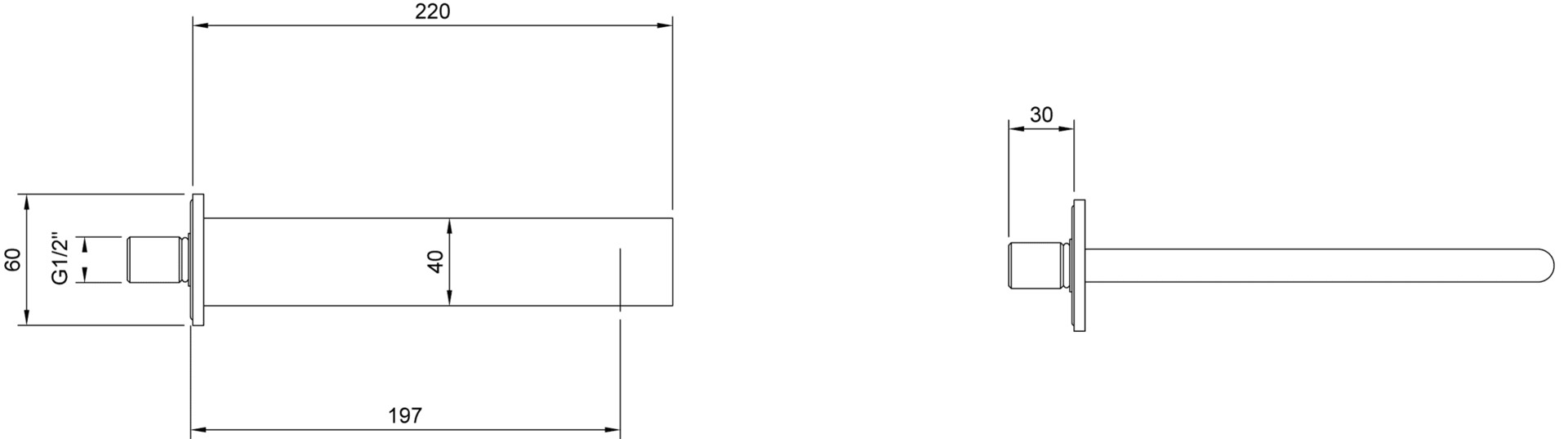60 x 60 x 220 mm, Rund, Material aus Messing, maximale Durchflussmenge bei 3 bar 24,1 l/min, Auslauflänge 196 mm