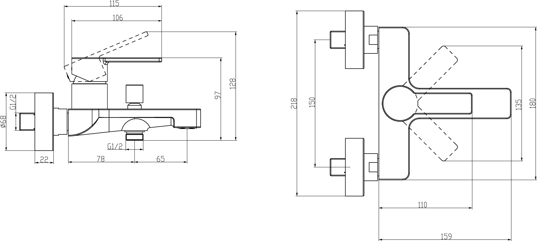 180 x 97 x 156 mm, Wandmontage, Kippen, Anschlussschlauch 1/2'', Chrom, S-Anschluss, Material aus Messing, Keramikkartusche, Durchflussmenge bei 3 bar 27 l/min, Auslauflänge 182 mm