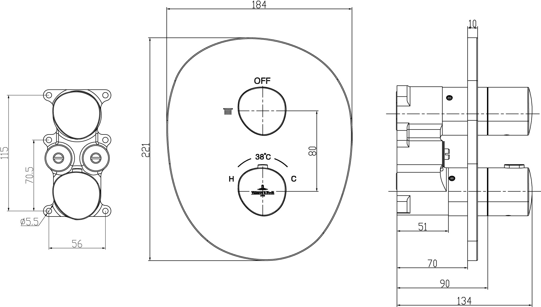 V&B Fertigmontageset ANTAO Unterputz-Thermostat mit Einwege-Mengenregulierung, chrom