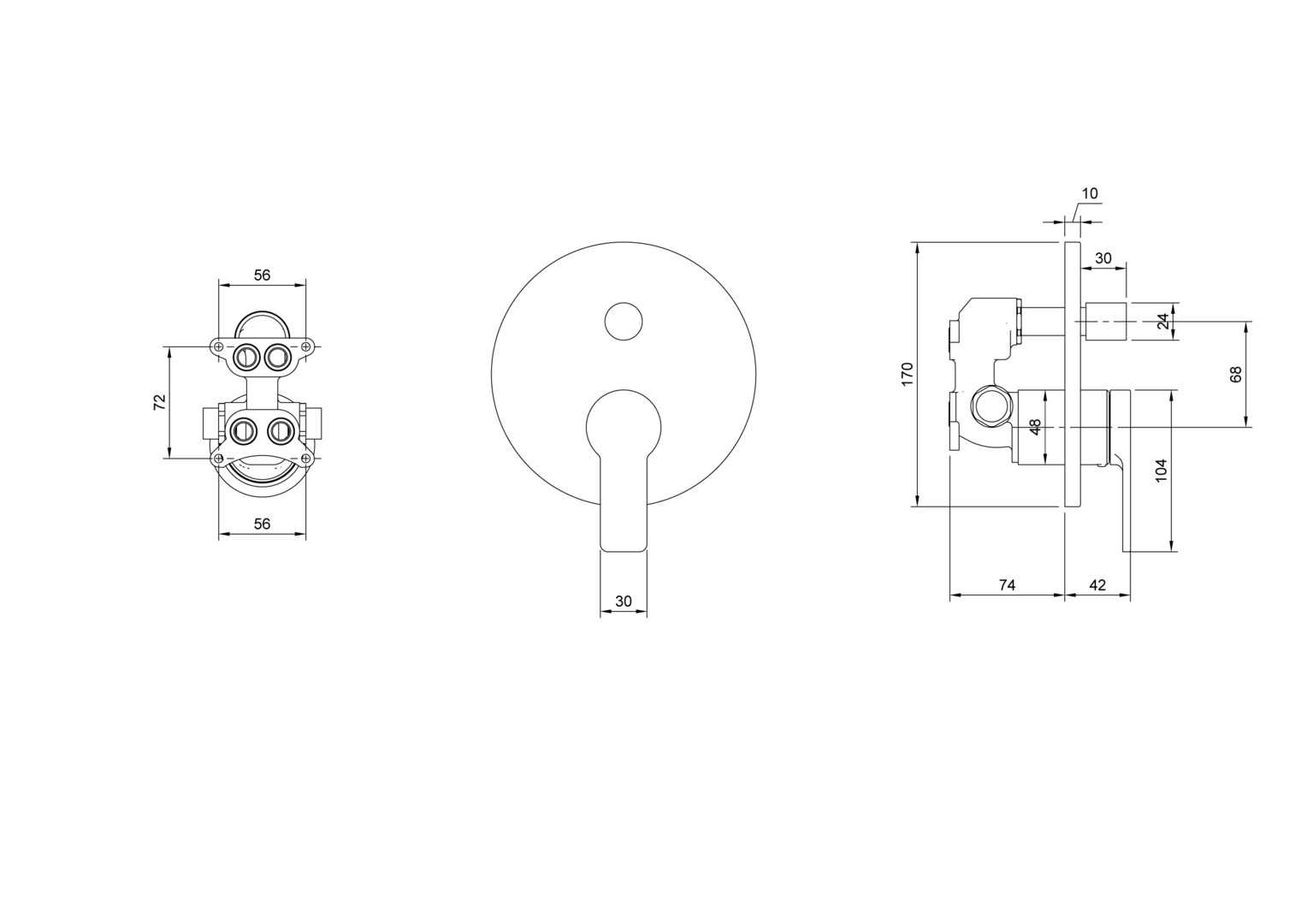 170 x 170 x 42 mm, Wandmontage, Kippen, Material aus Messing, Keramikkartusche, Anschlusstyp 1/2''