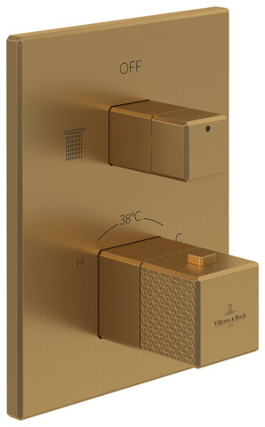 V&B Fertigmontageset Mettlach Unterputz-Thermostat mit Zweiwege-Mengenregulierung, brushed gold