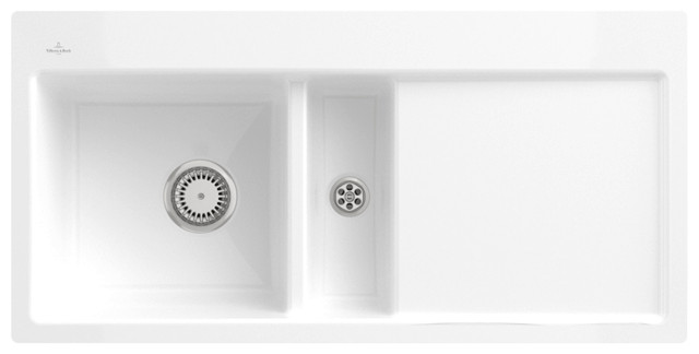 V&B Flächenbündige Spüle Subway 60 Flat links, mit Ablaufgarnitur, Handbetätigung, weiß
