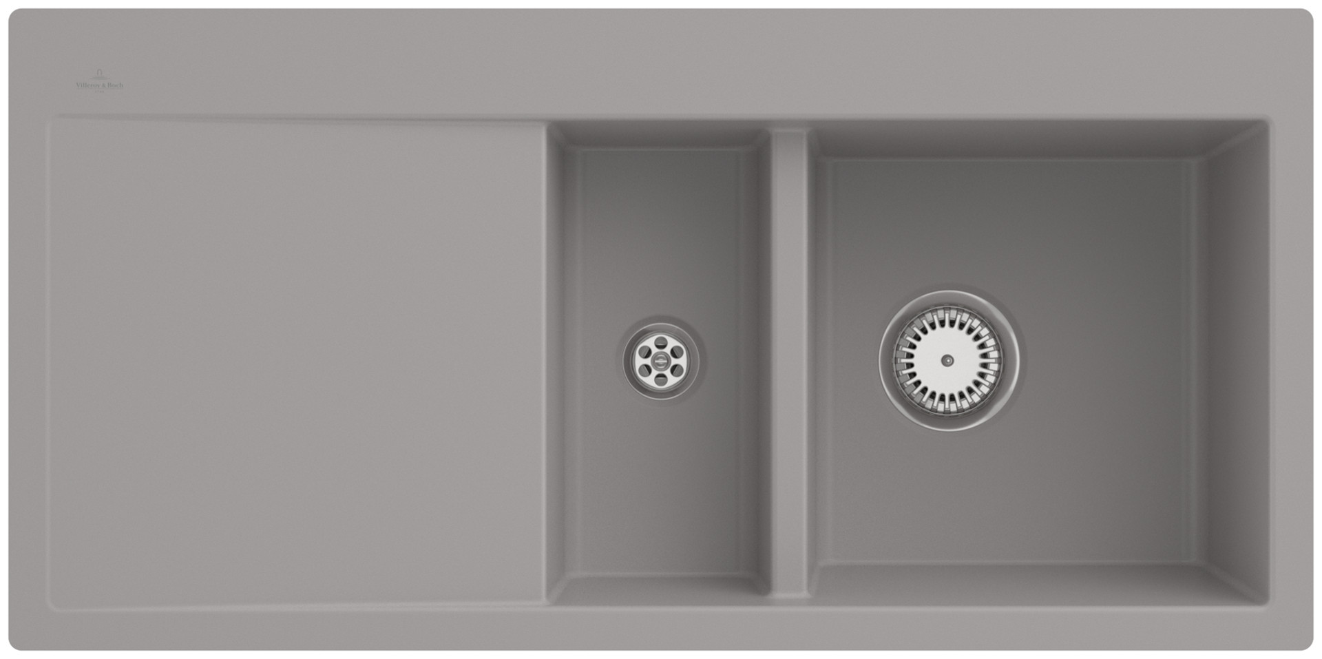 V&B Flächenbündige Spüle Subway 60 Flat rechts, mit Ablaufgarnitur, Handbetätigung, fossil