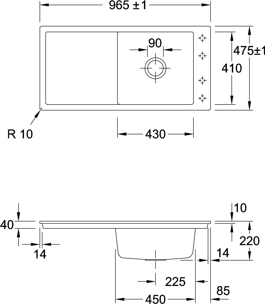 für den flächenbündigen Einbau in Natur-/Keramik-/Glas- und Quarzsteinarbeitsplatten, minimale Unterschrankbreite 60 cm, Minimalstärke der Platte bei Platzierung mit Geschirrspüler mind. 4 cm