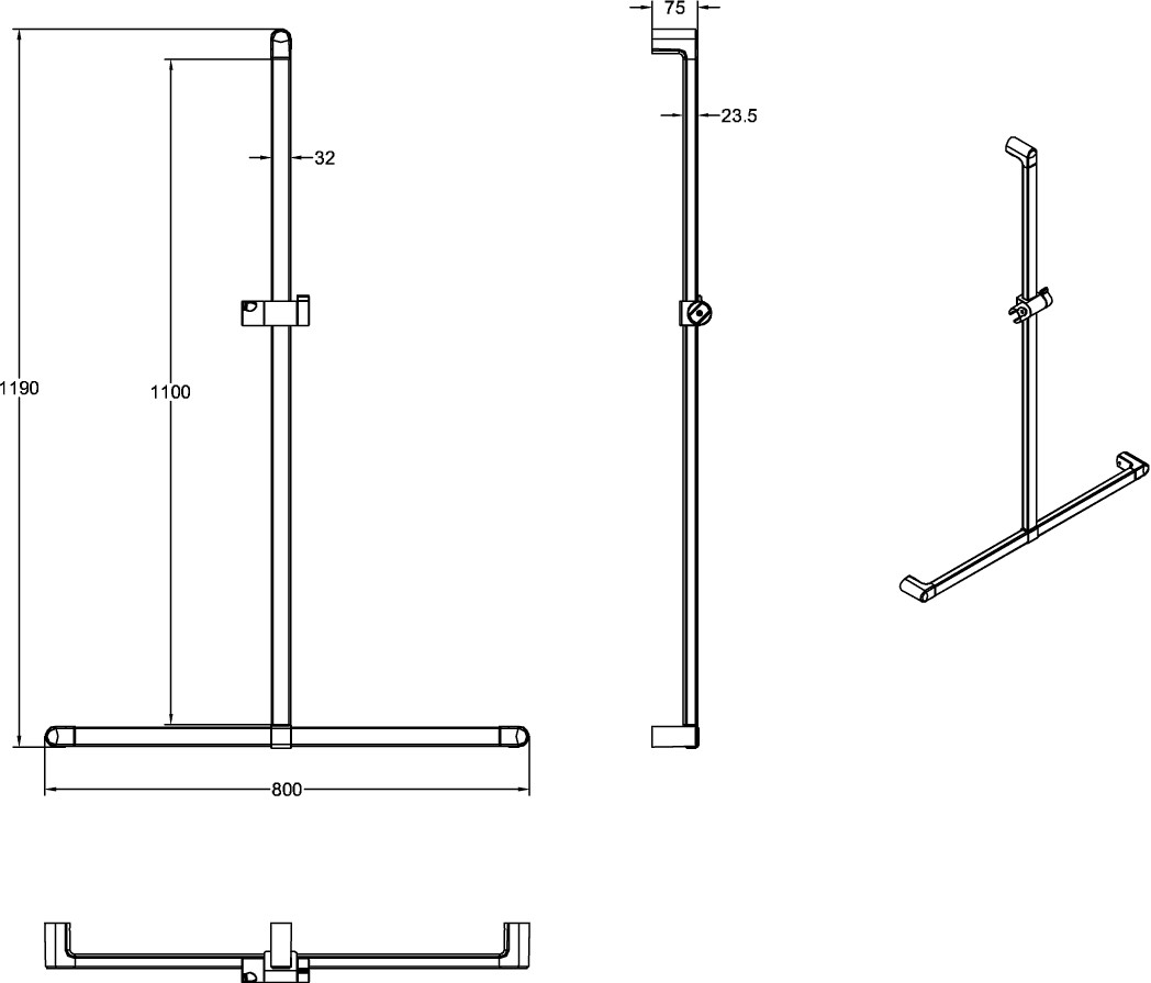 V&B Handlauf Vicare Design 119 x 80 cm, Aluminium verchromt, T-Form mit Brausehalter