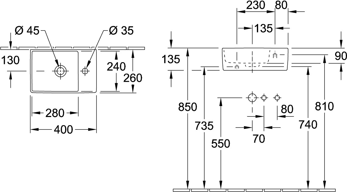 | Anzahl der Hahnlöcher je Waschplatz | 1 |