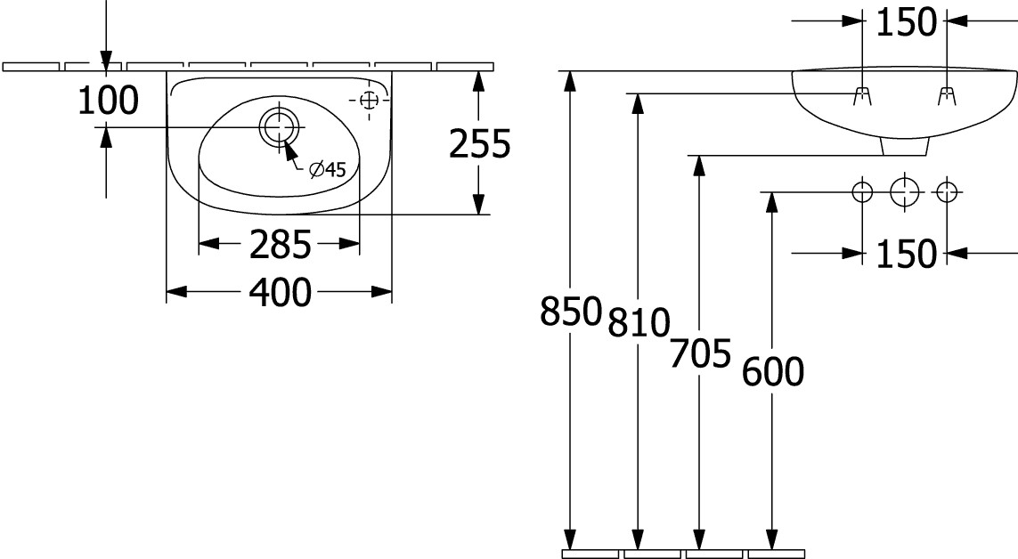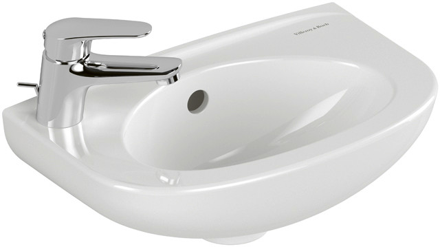 V&B Handwaschbecken Newo 40x25cm, oval, 1 Hahnloch, mit Überlauf, links, weiß