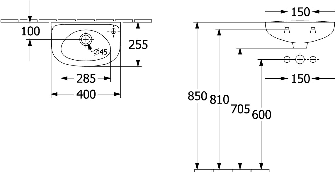 V&B Handwaschbecken Newo 40x25cm, oval, 1 Hahnloch, mit Überlauf, rechts, weiß
