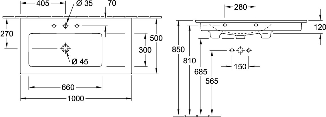 V&B Möbel-Waschtisch VENTICELLO 100 x 50 cm, mit Hahnloch, mit Überlauf, links, weiß K20563919