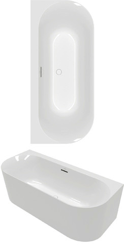 Vorwand-Badewanne, OVAL, Inhalt mit 1 Person 138 l, bestehend aus 1 x Offset Badewanne, 2 x Gestell mit je 2 Füßen, Durchmesser Ø 52 mm, der Ablauf ist immer in Wannenfarbe, auf einer Länge von 390 mm sind in der Mitte auf der langen Seite keine Armaturenlöcher möglich