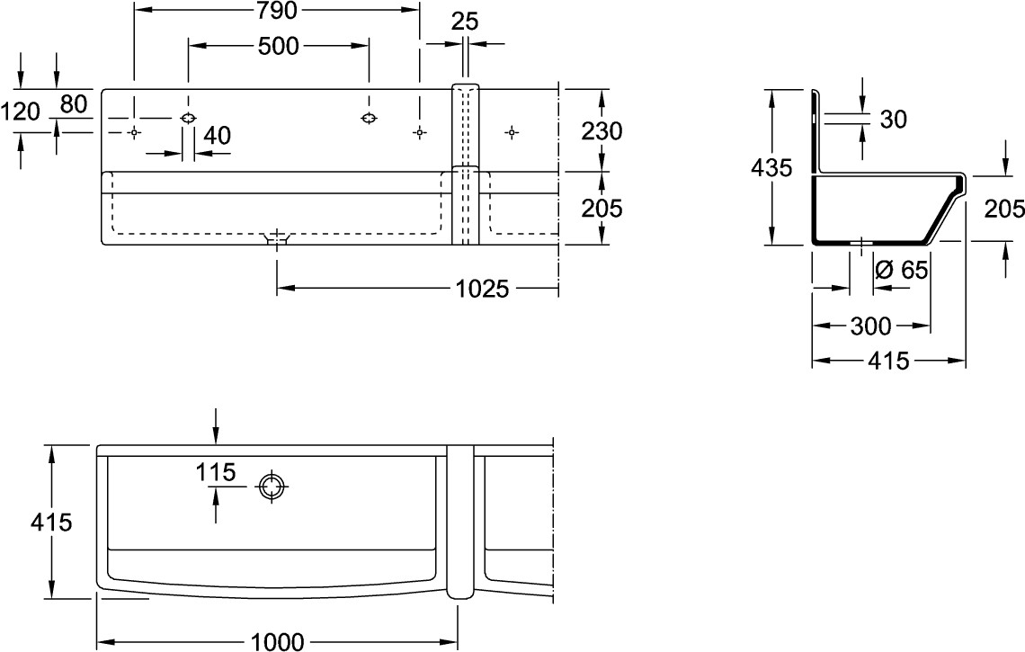 V&B Reihenwaschanlage O.NOVO 100 x 20,5 x 41,5 cm, weiß