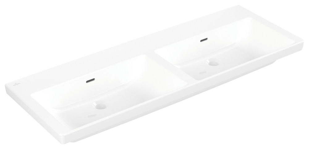 V&B Schrank-Doppelwaschtisch Subway 3.0 130x47cm, eckig, mit je 1 Hahnloch/ohne Überlauf, weiß K20563120