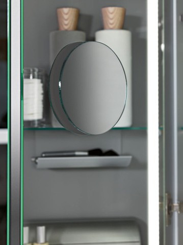 4 Glasablagen, 1 Ablageschale, 1 Vergrößerungsspiegel, 1 Magnetleiste, Sensorschalter und 2 Steckdose, IP44, mit Befestigungssatz