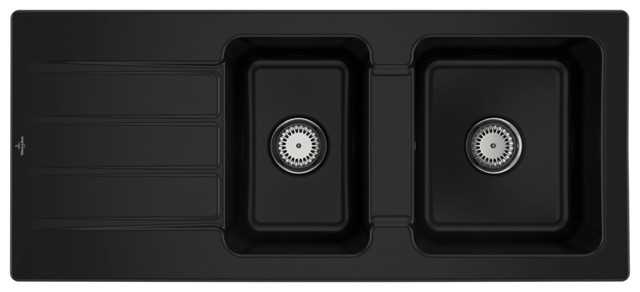 V&B Spüle Architectura 80 mit Ablaufgarnitur, Handbetätigung, ebony CeramicPlus