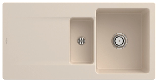 V&B Spüle Siluet 60 R mit Ablaufgarnitur, rund mit Handbetätigung, ivory CeramicPlus