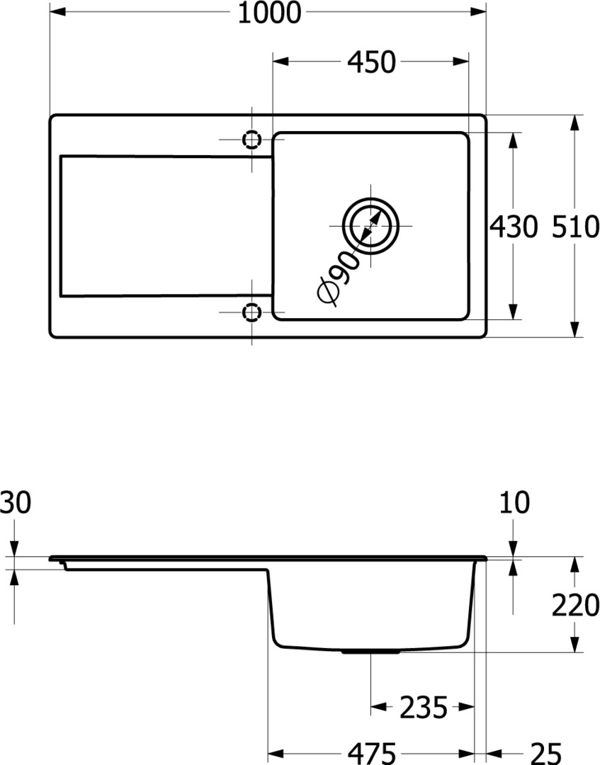 V&B Spüle Siluet 60 mit Ablaufgarnitur, rund mit Handbetätigung, chromite