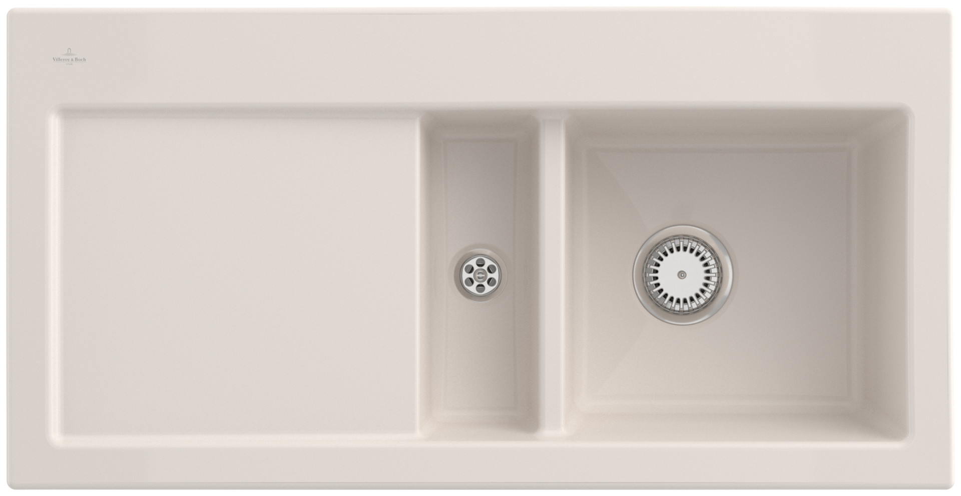 V&B Spüle Subway 60 rechts, mit Ablaufgarnitur, Handbetätigung, crema CeramicPlus